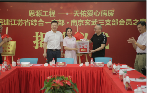 饮水思源,大爱传承。7月21日下午,“民建思源工程·天佑爱心病房”正式落户南京天佑儿童医院。省政协副主席、民建江苏省委主委洪慧民,民建江苏省委专职副主委常本春,民建南京市委副主委陈定荣,民建江苏省直一支部主委杨珺,民建南京玄武总支主委魏晨,民建玄武三支部主委刘绛军,民建会员、民建思源工程天佑爱心病房项目发起人黄春池,及民建江苏省直一支部、南京玄武三支部的民建会员代表共同出席揭牌仪式。省政协副主席、民建江苏省委主委洪慧民现场为受助儿童家庭代表发放救助金。此外,省民建综合一支部主委杨珺介绍了民建思源工程天佑爱心病房基金的使用情况。困难儿童家庭在此可以通过申请享受到公益援助,帮助困难患儿家庭减轻就医负担。